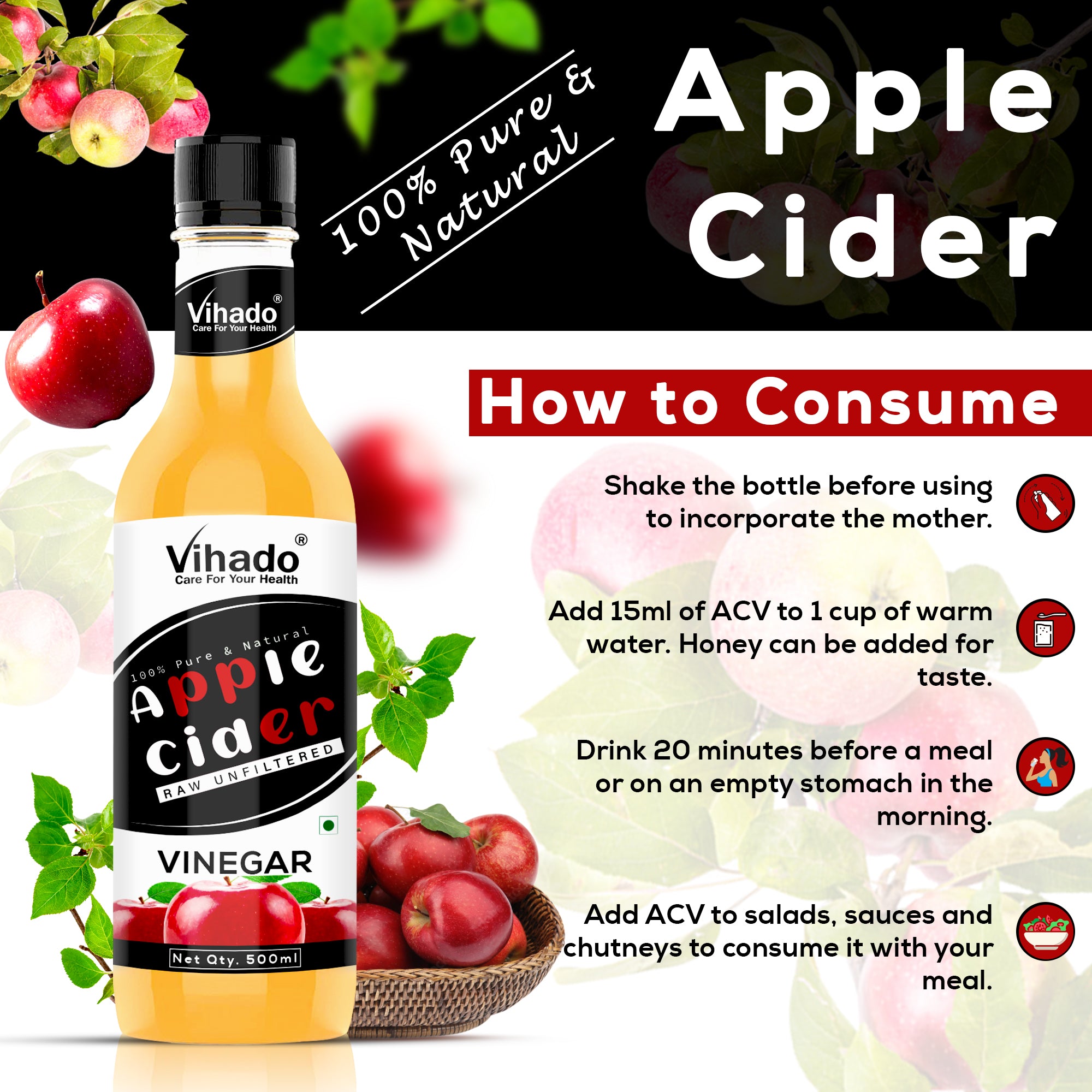 Flavonoids, phenolic compounds (gallic acid, catechin, caffeic acid, epicatechin, chlorogenic acid and p-coumaric acid) are the constituents of apple cider vinegar.