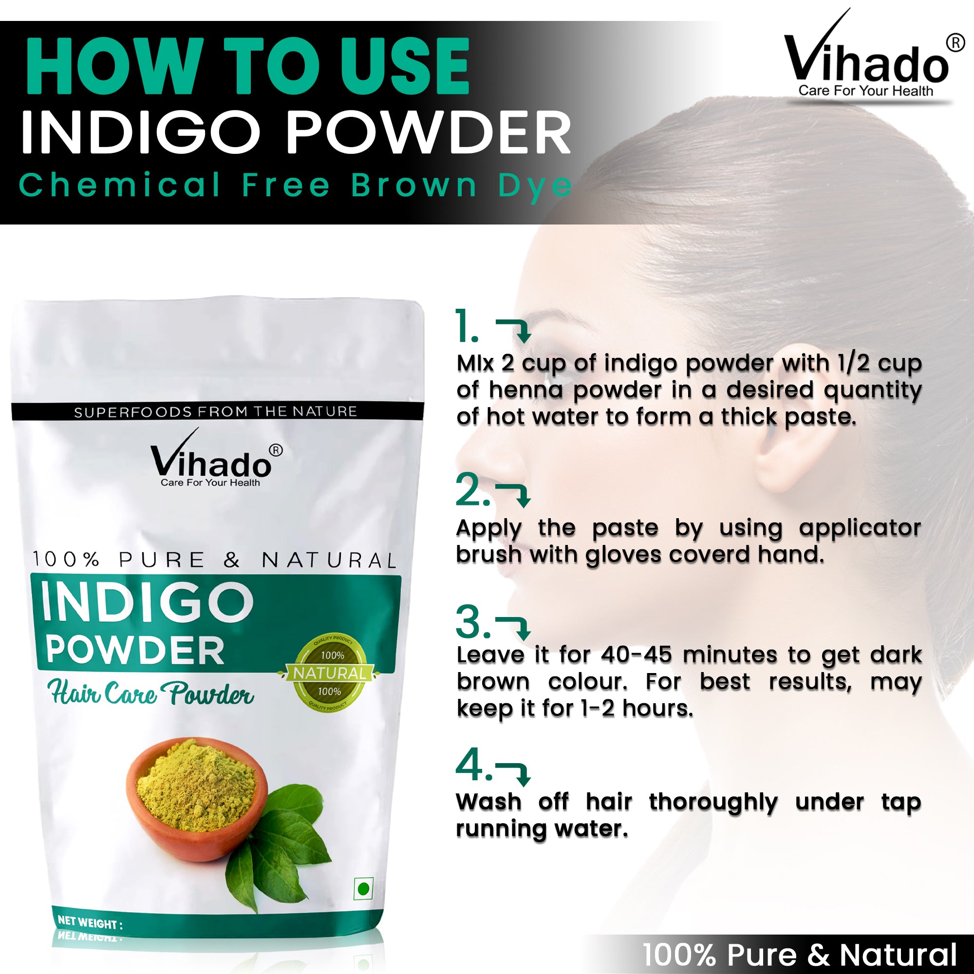Our pure Indigo Powder can be blended with yeast and Morrocan clay to brighten the skin. Organic indigo leaf powder formula can also help fade dark spots and can be used to lighten the skin areas that have been turned dark in the areas or intimate areas.