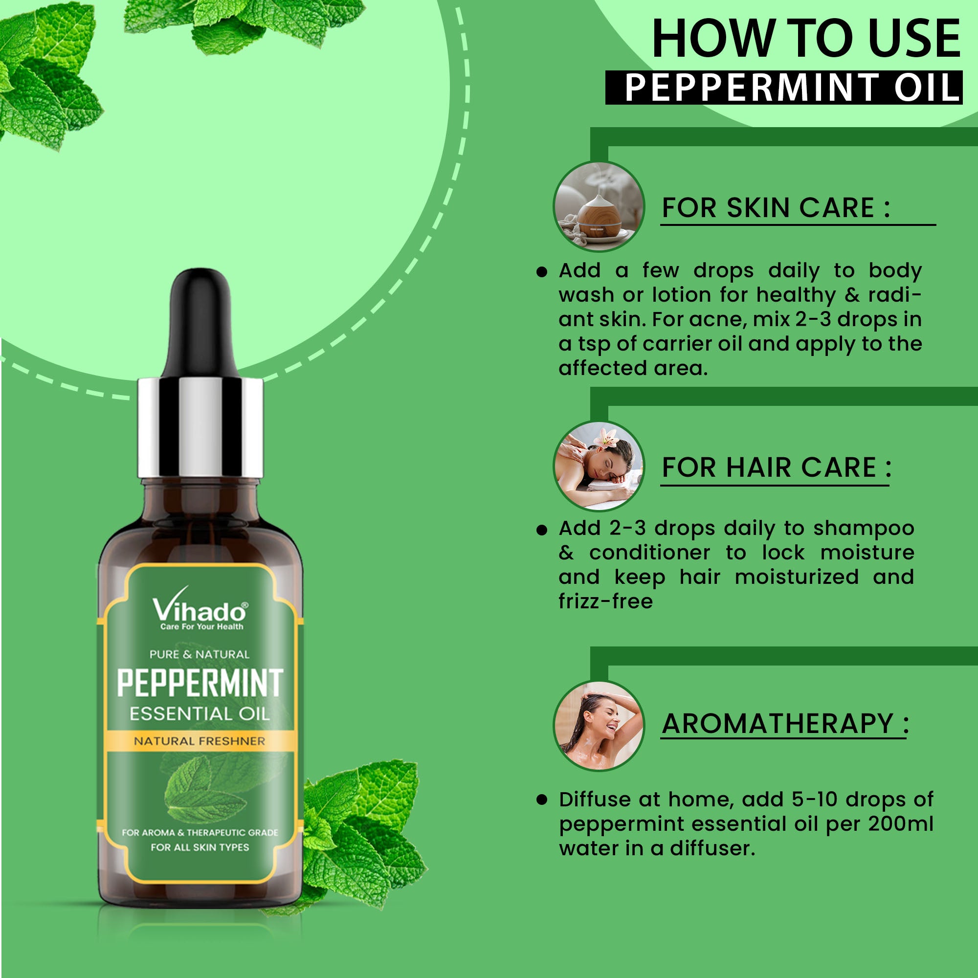 Peppermint oil’s properties can actually help to bring down the temperature of the body and calm it, as it can also reduce inflammation. In addition, pure peppermint oil serves as a natural antibacterial agent.