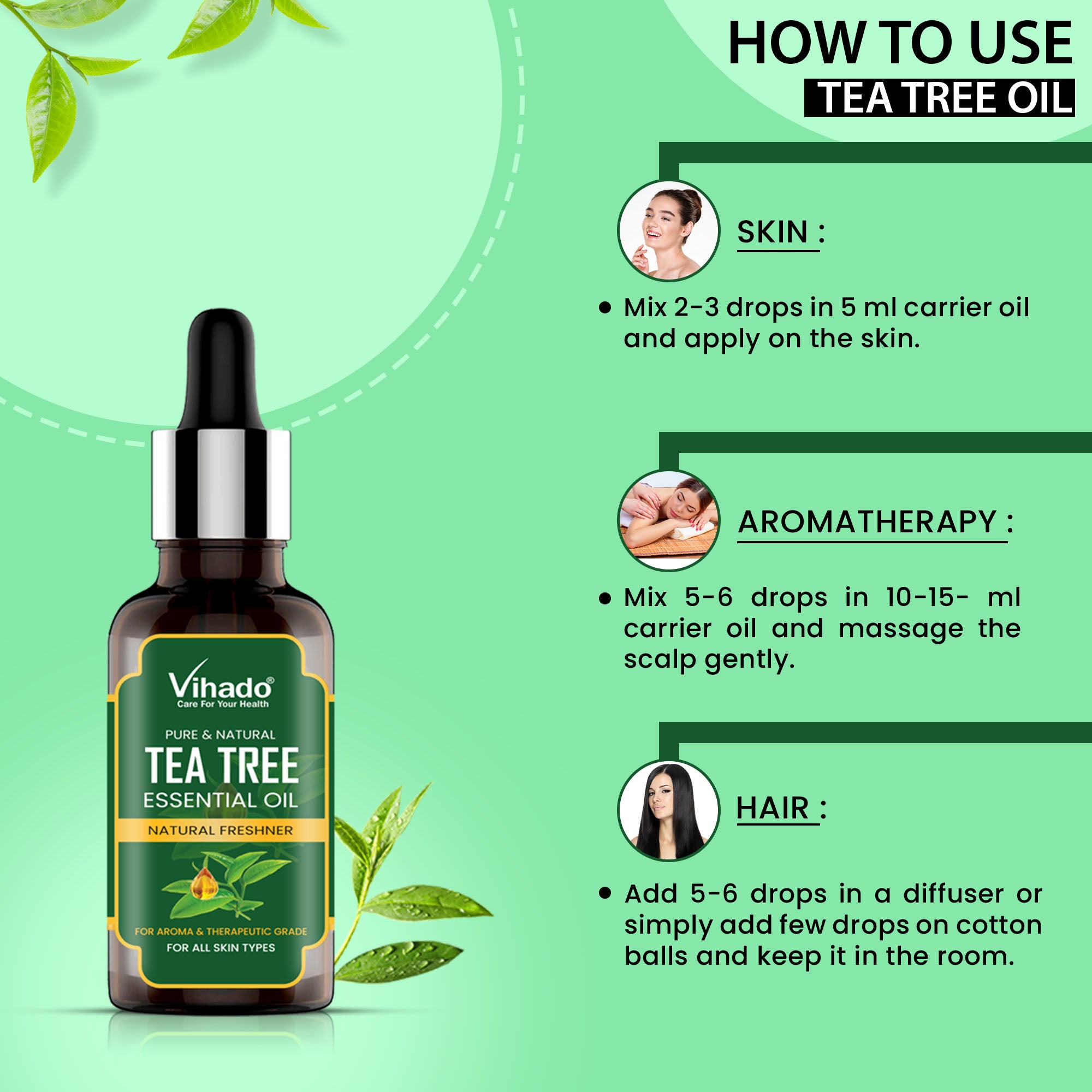 Since Tea Tree oil is rich in healing properties, it helps to quickly heal and reduce the appearance of scars that cause discoloration, dark spots and hyper-pigmentation.